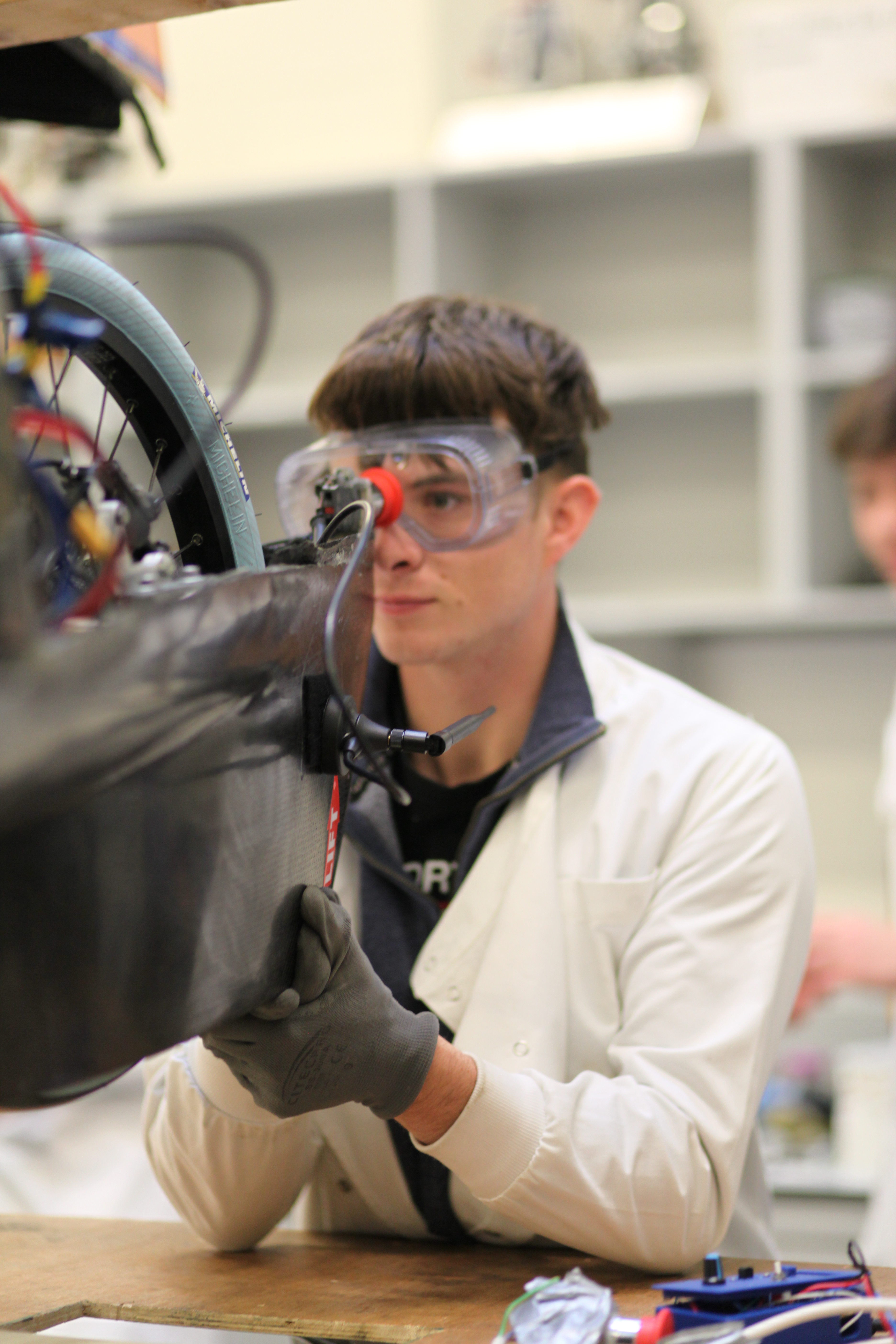 Our vehicle features a lightweight carbon-fiber chassis, custom electric powertrain and advanced aerodynamic design. It represents thousands of hours of student work and continuous improvement.